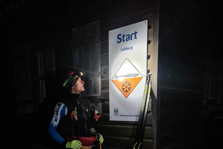 Das Auto vollgepackt am Vortag mit 6 Paar Ski für eisige, nasse und umgewandelte Verhältnisse, Ersatzstöcke, Wechselkleidung, Nudelsalat, Bananen, Riegel, Gels, Ananasstücke, Wasser, Cola, Pancakes, ging es am Samstag sehr früh los. Den Wecker stellte ich auf 3:20 Uhr, allerdings war ich schon um 3:00 Uhr wach und spürte den inneren Trieb das Ding heute zu rocken und durchdrücken zu wollen. Nach einem ausgiebigen Frühstück ging es los in Richtung Langlaufzentrum Scheibe, oberhalb von Lohberg, wo der Startpunkt war.