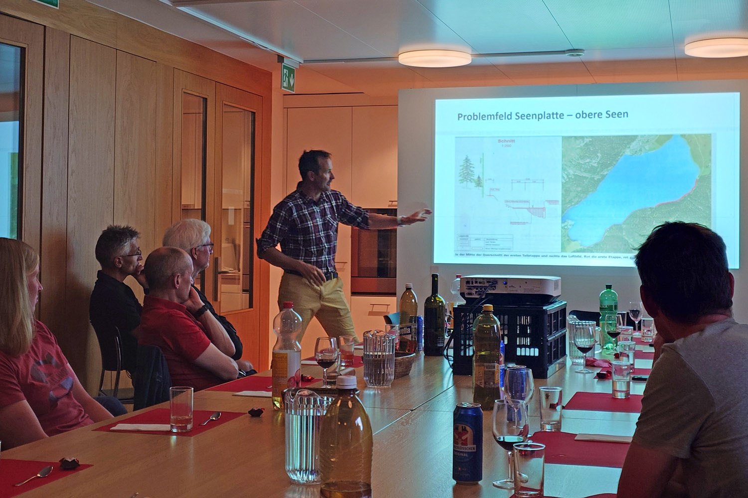Und am Abend wartete bereits das nächste Highlight. Heidi hatte für unsere gesamte Truppe ein Essen mit regionalen Spezialitäten vorbereitet. Graupensuppe, Pizzoccheri und zur Nachspeise Engadiner Nusstorte waren einfach ein Gedicht und die Energiereserven schnell wieder gefüllt. Außerdem durften wir einen ganz besonderen Gast begrüßen. Adriano Iseppi, Mitbegründer der La Diagonela, Wettkampfchef des Langlauf-Weltcups im Engadin und des Engadin Skimarathons sowie Langlauf-Experte des Schweizer Fernsehens brachte uns in einem interessanten Vortrag die klimatischen und organisatorischen Herausforderungen des Langlauf-Standorts Engadin näher.