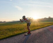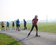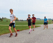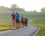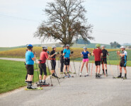 Das dichtgedrängte Programm sah insgesamt fünf Trainingseinheiten an 3,5 Tagen vor. Die Ausdauereinheiten starteten direkt am Sportbauernhof, von dem aus man über wenig befahrene Nebenstraßen zum Römerradweg gelangt. Dieser erstreckt sich nahezu endlos durch den Innkreis und Skiroller-Runden von 40 Kilometern und mehr sind möglich. Während sich unsere Challenger von Thomas Freimuth Technik-Tipps holten, sammelten die Ski Classics Athleten und Skimarathon-Spezialisten eifrig Trainingskilometer. Am Samstagvormittag stand dann für alle eine lange Skirollerrunde an, die alle hervorragend meisterten. Das sportliche Programm rundeten eine Athletikeinheit geleitet von Teamathletin Nadja Wolff, eine Laufschule und eine Laufeinheit ab. Am Abend wurde interessanten Vorträgen einzelner Teammitglieder gelauscht. So berichteten Klaus und Thomas Östreich von ihren Norwegen-Trips, Melina Mayer sprach über das Thema Motivation und Teamcaptain Thomas Freimuth über Trainingsplanung. Dazu gab es noch eine inoffizielle Filmpremiere. 😉
