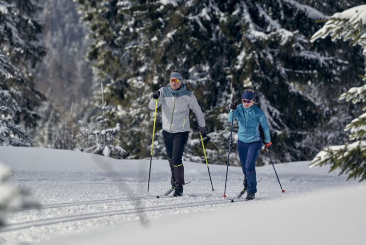 Langlaufen fordert den ganzen Körper – nahezu die gesamte Muskulatur, die Ausdauer sowie Gleichgewicht und Koordination, also auch den Kopf. Als Anfänger kann daher schnell Ermüdung eintreten, selbst wenn man beispielsweise regelmäßig joggen geht – die Komplexität der Bewegung beim Skilanglauf ist eine ganz andere Herausforderung. Deswegen sollte man zum Einstieg die richtigen Loipen wählen. Wie beim Ski Alpin sind auch beim Langlaufen die Schwierigkeiten anhand der Farben zu erkennen: blau sind die einfachsten Loipen, rot steht für mittelschwer und schwarze Loipen haben den größten Anspruch. Dies bezieht sich aber nicht nur auf die Anzahl an Höhenmetern, die es zu bewältigen gilt, sondern auch auf den technischen Anspruch. Schwarze Loipen beinhalten nämlich häufig auch schnelle Abfahrten und/oder herausfordernde Kurven. Als Anfänger sollte man daher zunächst mit blauen Loipen und kürzeren Distanzen starten. Wenn Kondition und Technik besser sind, kann man schließlich die Länge und auch den technischen Anspruch erhöhen.