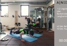 Die Sportwissenschaftler vom AusdauerNetzwerk, Mathias Flunger und Thomas Freimuth, befassen sich im zweiten Block des allgemeinen Krafttrainings gezielt mit dem Training des Bizeps- und Deltamuskel begleitet von einem bunten Mix an Stabi-, Dehnungs- und Mobilisationsübungen …